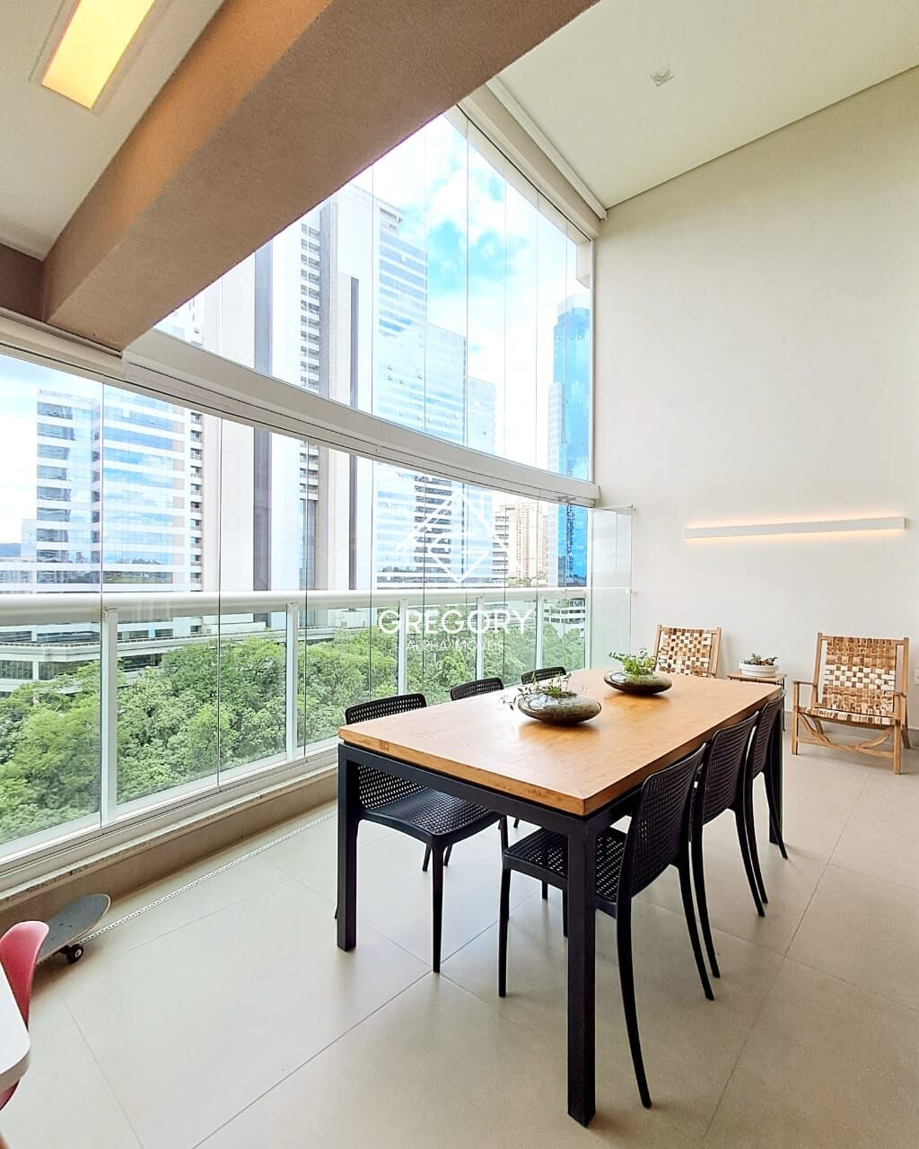 Apartamento andar alto de 350m2 com elevador de acesso privativo, ar condicionado em todos ambientes, varanda gourmet integrada com vista para o parque com muito verde e com acesso direto por dentro do condomínio ou por uma rua exclusiva, trazendo conforto e segurança para os moradores. Sala com pé direito duplo personalizado com um mesanino aproximado de 40m2.