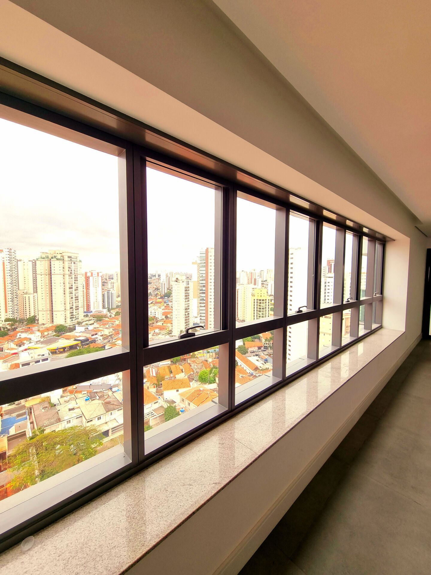 Amplas janelas com venezianas automatizadas, com conforto acústico e blackout.