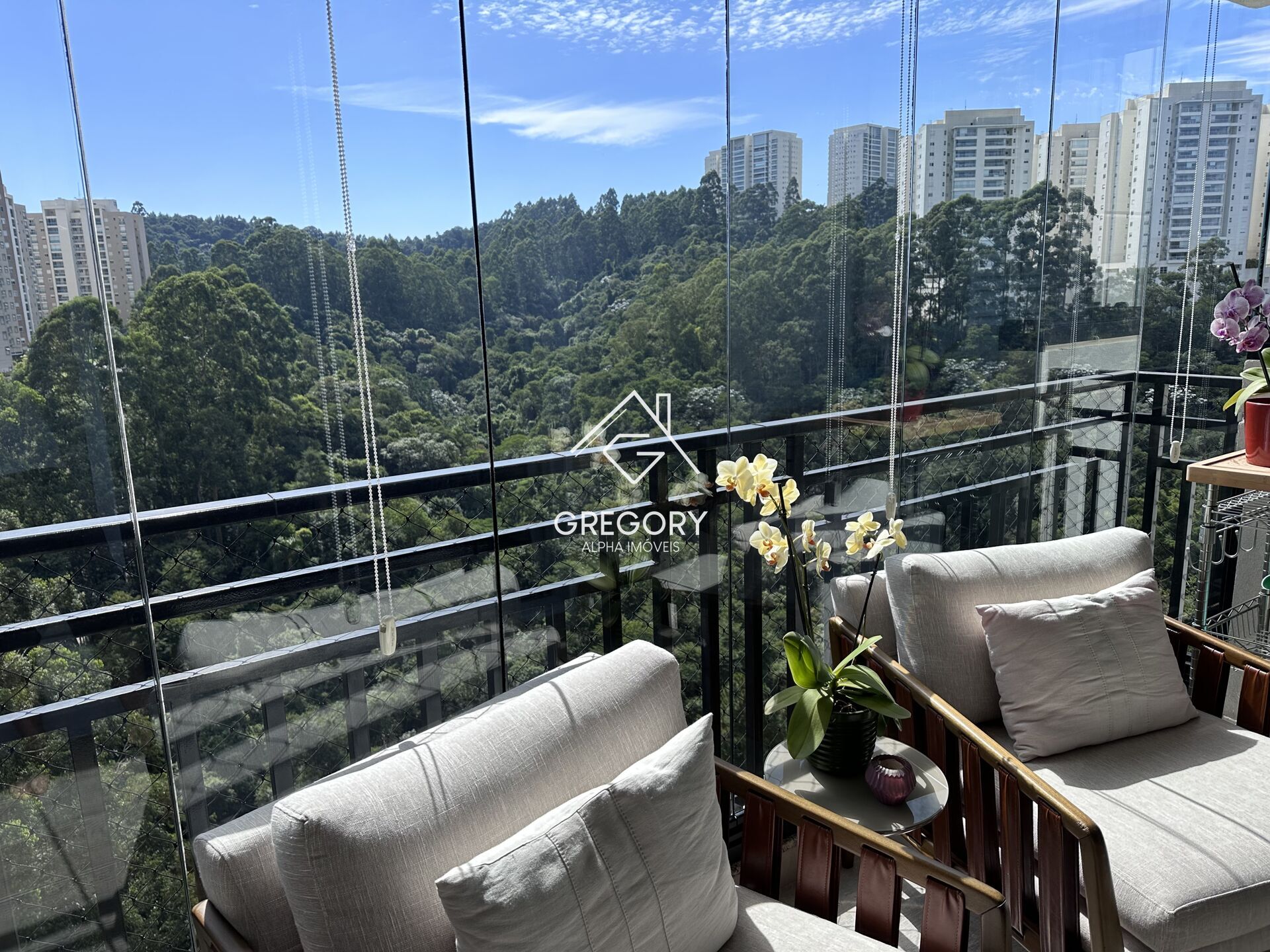 Encante-se com este incrível apartamento de 101 m², localizado em andar alto do prestigiado Bosque Tamboré. Com 3 dormitórios, sendo 1 suíte com closet, essa unidade foi pensada para proporcionar conforto, sofisticação e bem-estar, em perfeita harmonia com a natureza ao redor. Diferenciais que fazem toda a diferença: Vista livre e permanente para a mata preservada, Retrofit feito há menos de 4 anos, Climatização inverter em todos os cômodos, Armários planejados na cozinha e nos dormitórios, Aquecimento a gás com aquecedor novo, Varanda fechada com vidro e persianas sob medida, Orientação solar face norte, Duas vagas de garagem paralelas, livres e garantidas em escritura Ambientes amplos e bem distribuídos: Sala para dois ambientes, Cozinha funcional com triturador na pia, Escritório, Banheiro social Área de serviço + despensa, Banheiro para funcionários. A varanda é o destaque dessa unidade, perfeita para um café ao amanhecer, leitura tranquila ou jantar em família com vista permanente para a natureza.