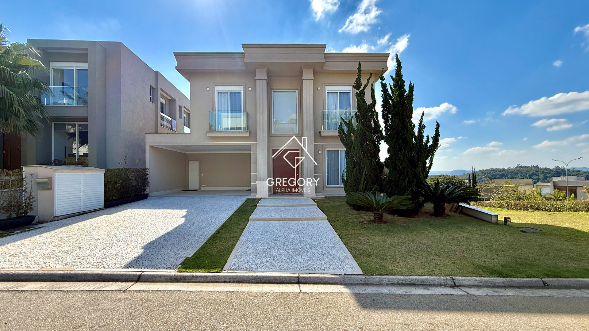 O pé direito duplo é imponente e dá um charme diferenciado ao imóvel. São 4 suítes, muito bem distribuídas em uma área construída de 430 m². A casa já está totalmente mobiliada e decorada, prontíssima para morar! Os móveis fixos são, em sua maioria, da ID Móveis, com exceção do espaço gourmet, que é assinado pela Kitchens. A infraestrutura é completa, com toda comodidade que a sua família busca!