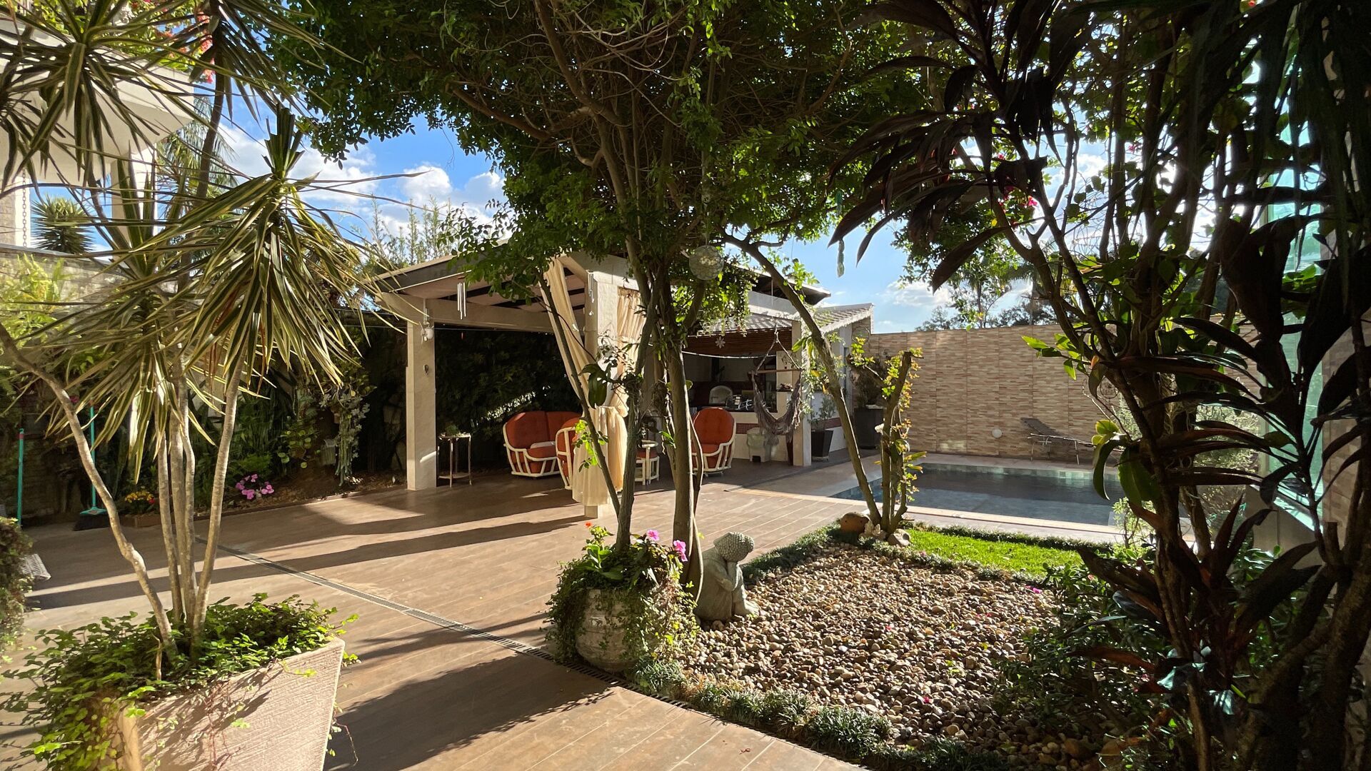 A residência conta com ar condicionado nas suítes, aquecedor solar