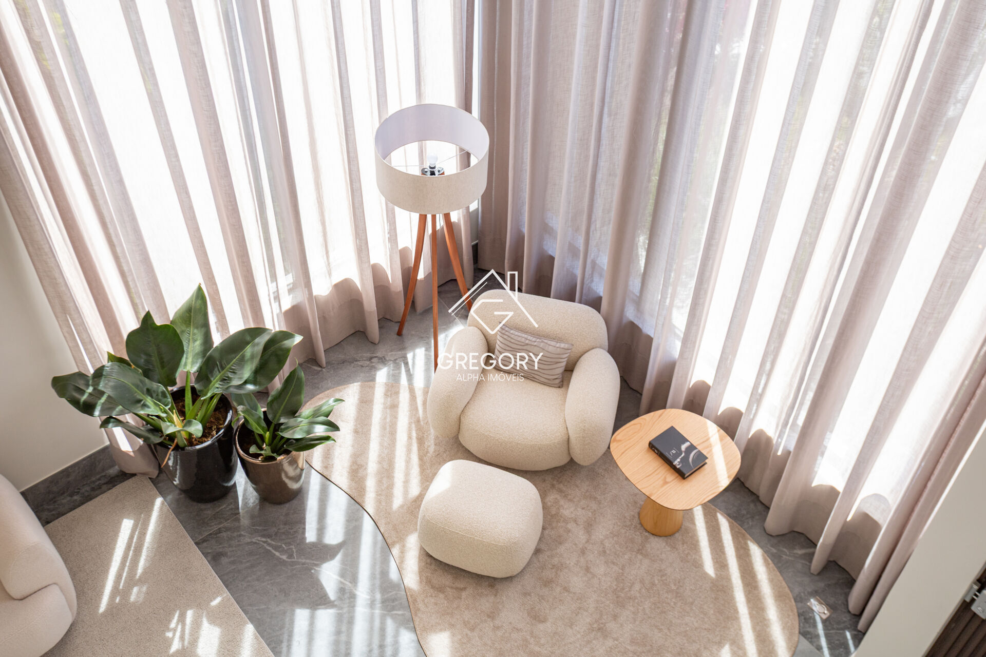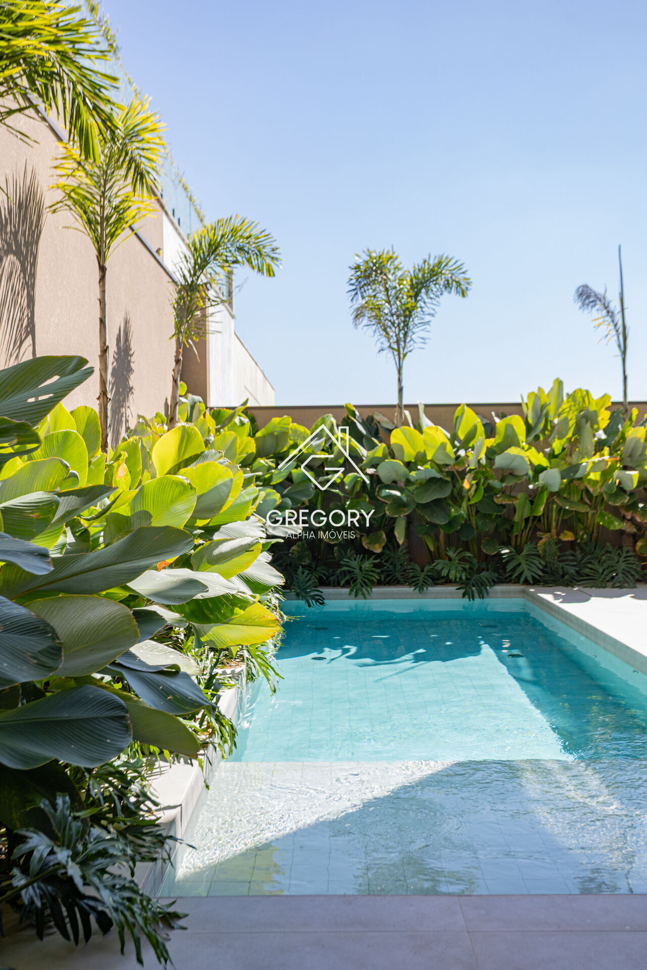 Residência impecável com 4 suítes, acabamentos de alto padrão e piscina. Projeto arquitetônico moderno, pé-direito duplo, integração entre os ambientes e execução, primorosa nos acabamentos. Suíte master com closet, banheira Larum Blanc e varanda, Roupeiro, copa de apoio e home theater climatizados, Salas para 2 ambientes, jantar e espaço para adega, Cozinha e área gourmet integradas com churrasqueira ArtGrill, forno e marcenaria completa, Escritório privativo, lavabo, lavanderia, dormitório e banheiro de serviço, Quintal com paisagismo