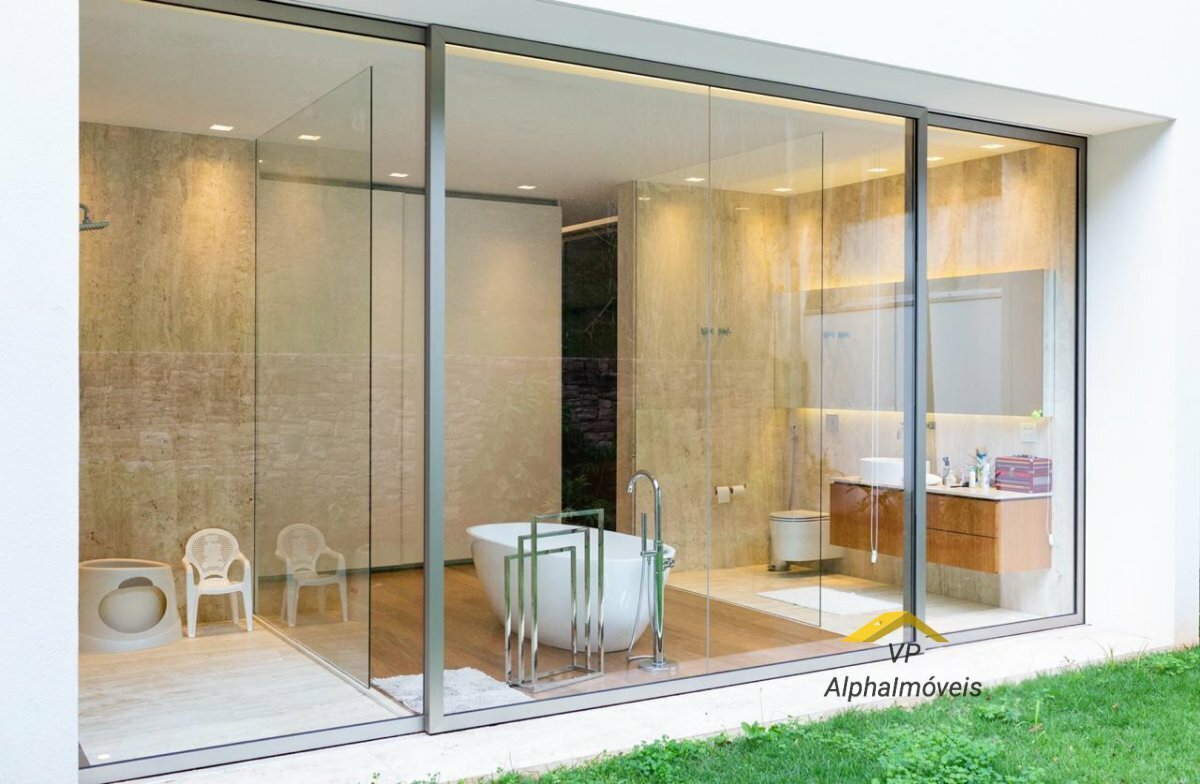 4 suítes e dependências de empregado, 7 banheiros, sauna, vestiário, espetacular vista frontal para o lago, ambientes totalmente integrados com portas de madeira de correr, elevador Otis para 6 pessoas,