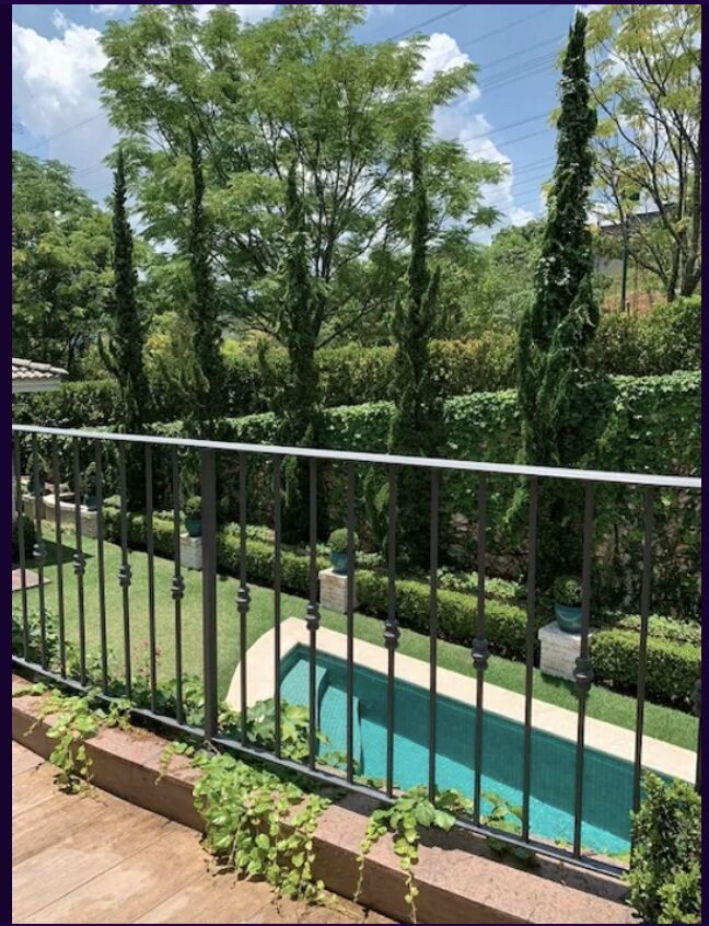 Localizada perto das quadras de tênis e jardim do condomínio ao lado.