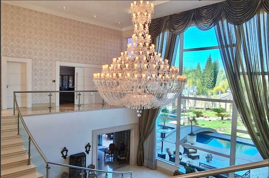 - Hall da escada com espelhos d’agua e elevador panorâmico, mezanino para acesso a área privativa, sendo 6 suítes, uma delas exuberante com dois closets, varanda privativa e vista privilegiada para a Alphaville/Tamboré.