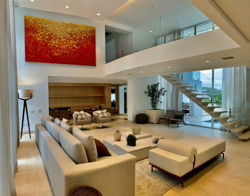 Linda casa em Tamboré, com 1.959 m² de terreno e 1.200 m² de construção, 5 amplas suítes sendo máster com amplo closet e hidro, repleta de armários, ar condicionado em todos ambientes, escritório, home theater, cozinha gourmet com ilha, sala de jogos, espaço gourmet, piscina, SPA e amplo jardim.