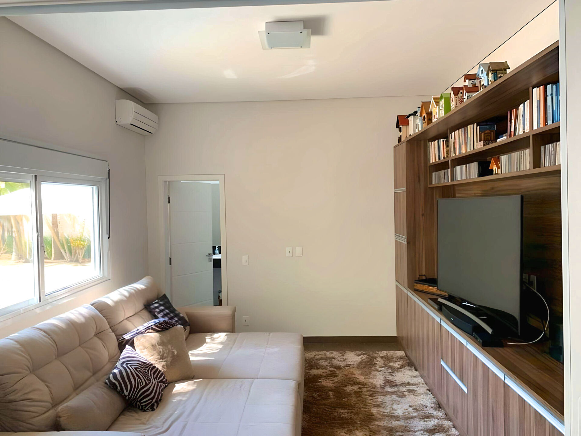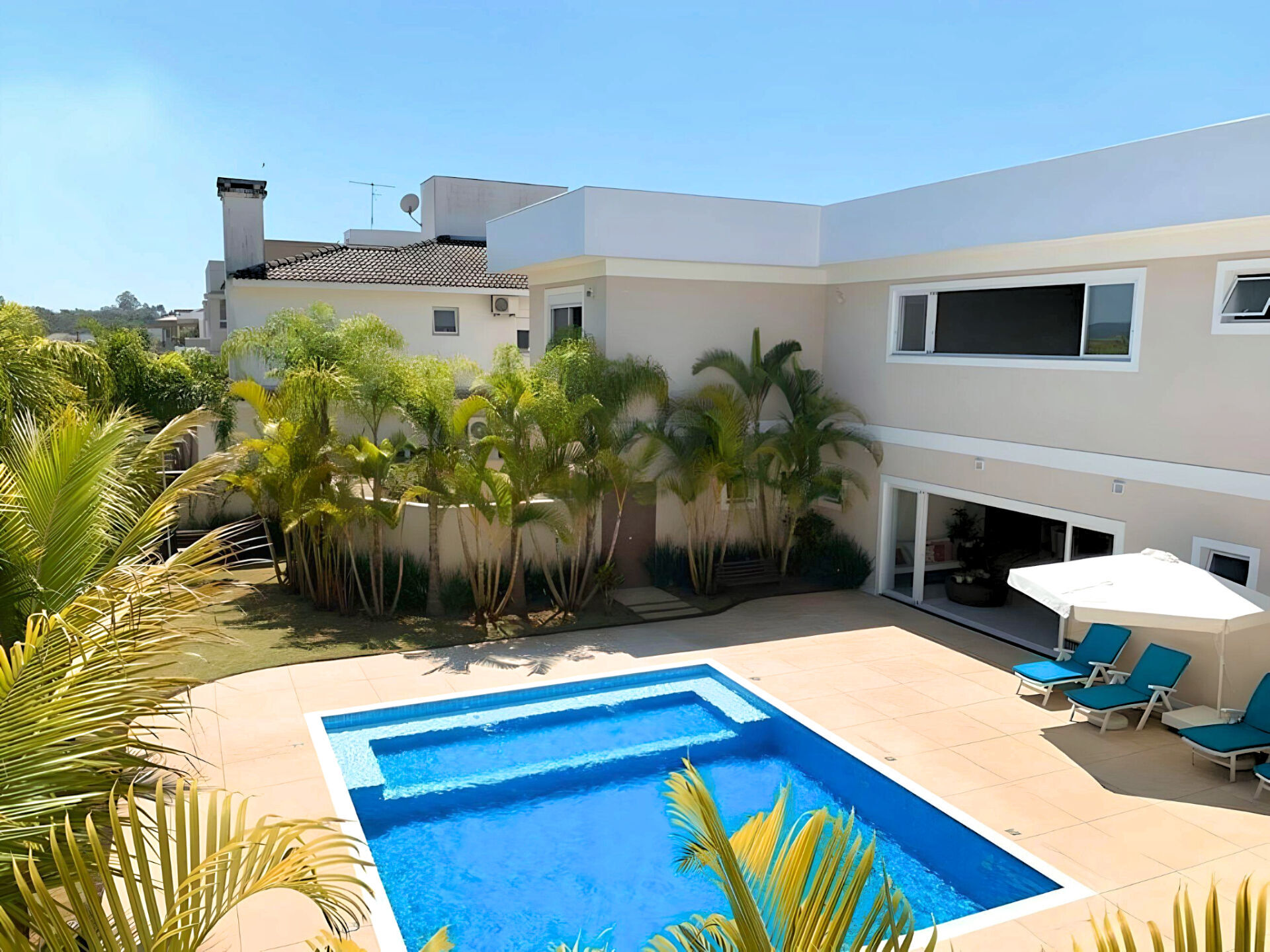 sala com pe direito duplo,sala privativa piso superior, ampla churrasqueira gourmet integrada a um espaço para festas, escritório , 9 banheiros, 6 vagas de garagem (3 cobertos com portão automático) spa com ofurô e sauna úmida , aquecimento solar e eletrico, todos os cômodos possuem ar condicionado quente/frio da marca Fujitsu inverter, ampla piscina climatizada con leds coloridos, reservatório de agua elevado com 10000 litros e possui reservatório de reuso de agua de 2500 litros
