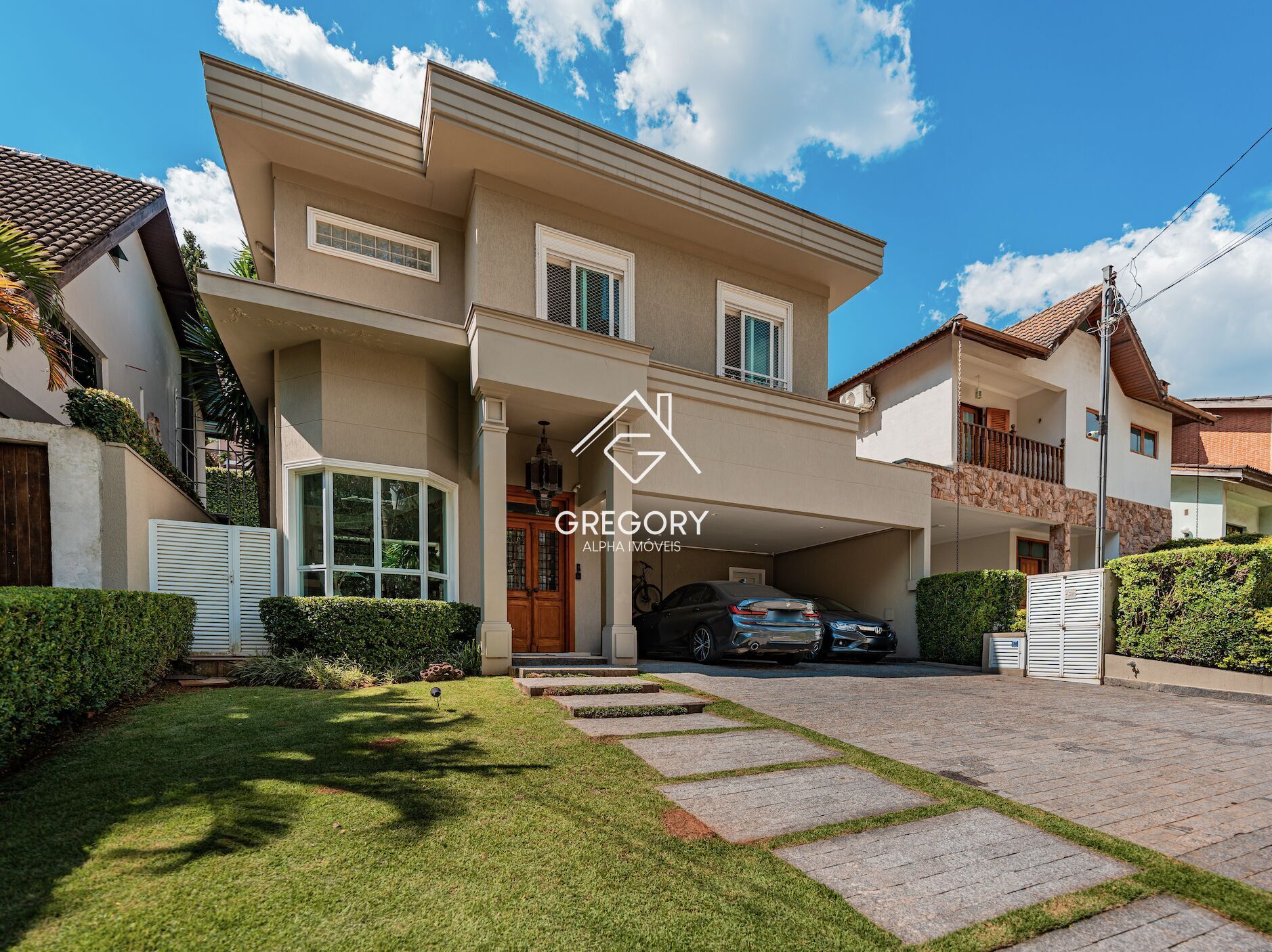 Charmosa e aconchegante, esta belíssima casa está situada em um condomínio fechado de alto padrão, muito bem localizado em Alphaville, e conta com uma estrutura de lazer completa. Logo ao entrar, o hall de entrada integrado à sala de lareira ganha um toque especial com a iluminação natural proporcionada pela janela by Window, tornando o ambiente ainda mais encantador e acolhedor.