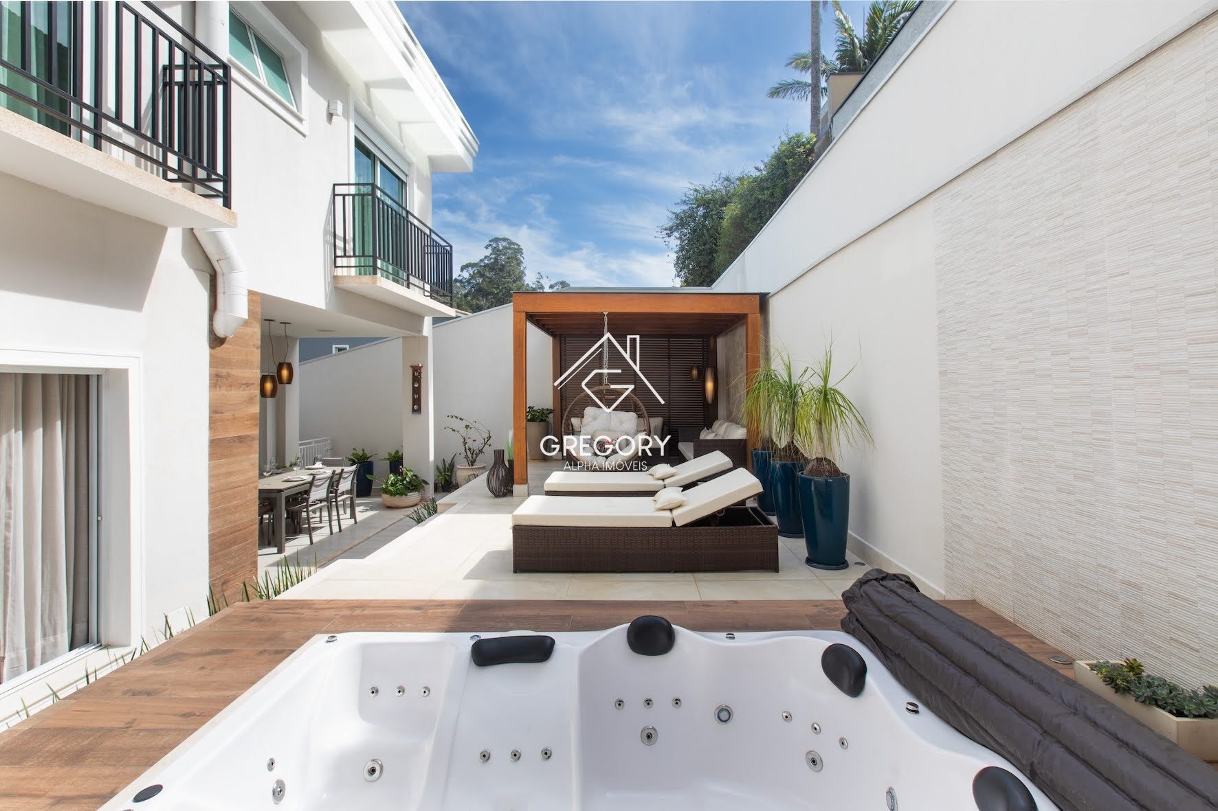 A casa dispõe ainda de garagem para quatro veículos, dois depósitos que garantem praticidade no dia a dia e uma área externa com hidromassagem aquecida para até sete pessoas, perfeita para momentos de lazer e relaxamento.