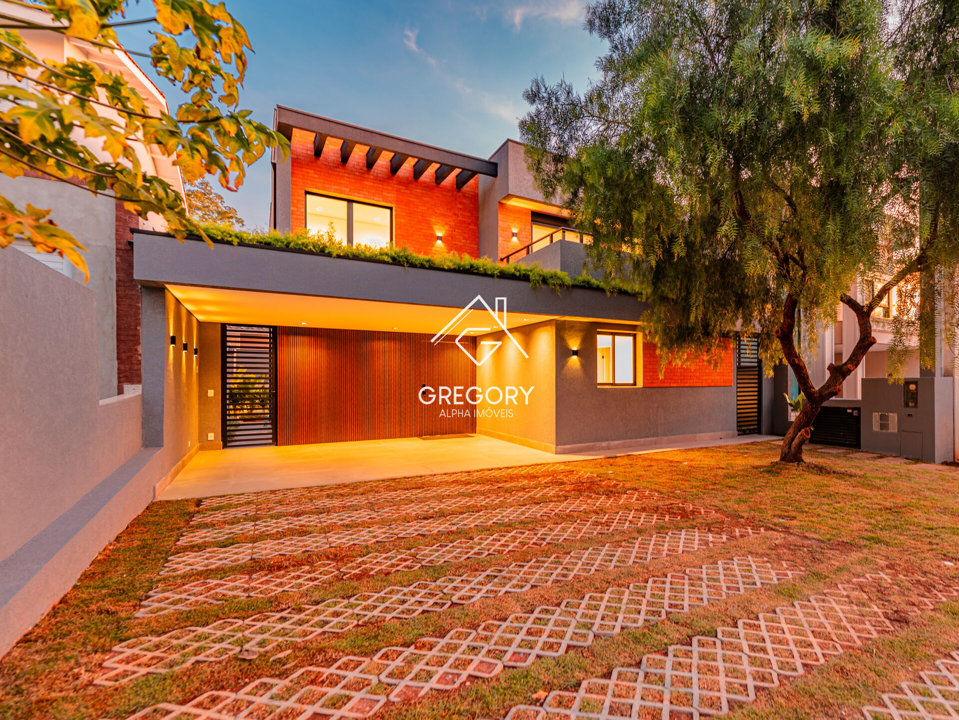 Residência contemporânea recém-construída, com excelente padrão de acabamento, ambientes integrados e tecnologia em cada detalhe. Projeto moderno em terreno plano, com fachada elegante e paisagismo completo.