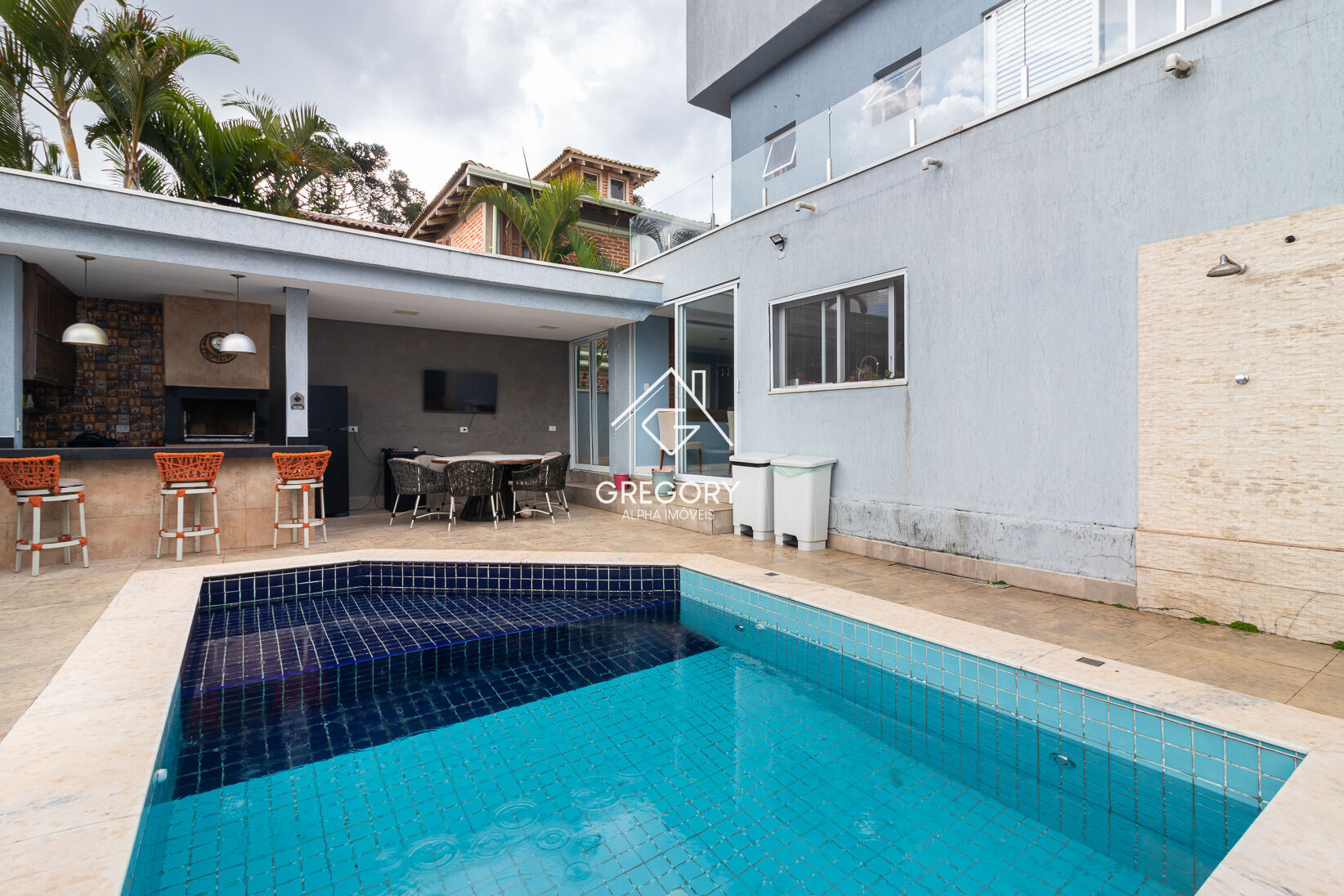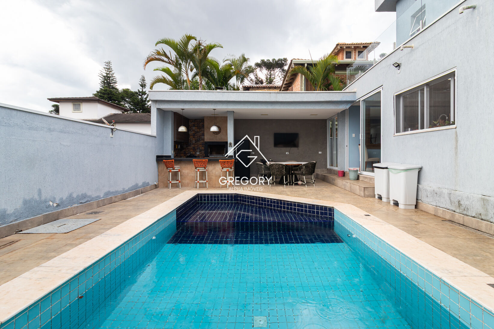 Na área externa, a piscina complementa o lazer, proporcionando momentos agradáveis de descanso e confraternização com amigos e familiares.