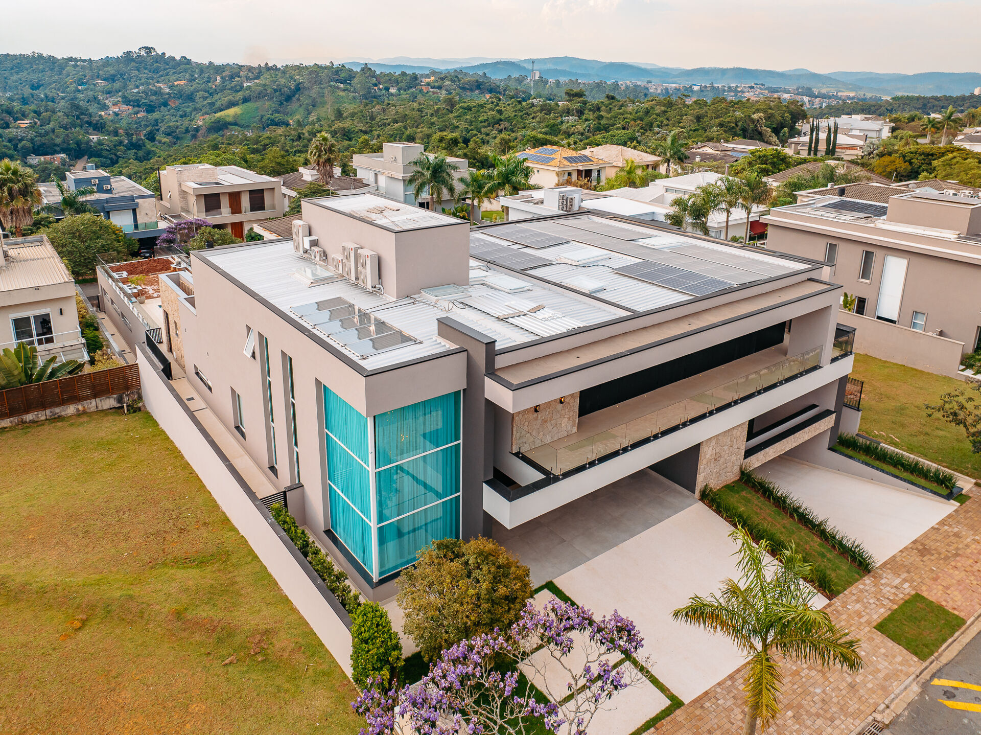 Além de todo o requinte, a residência é 100% automatizada e sustentável, equipada com um avançado sistema de energia fotovoltaica,