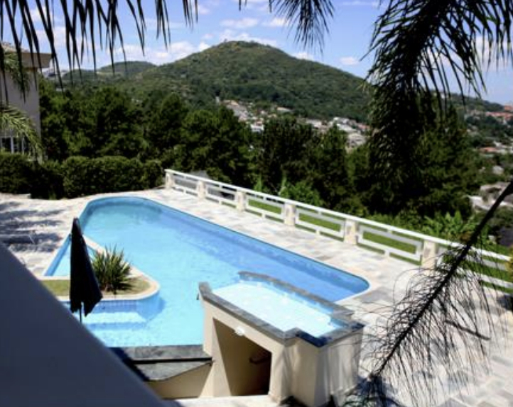 Três quartos de hóspedes. Dois quartos na parte de serviço. Dez banheiros, escritório, sala de almoço, salas de jantar e estar. Salão de jogos e adega. Sistema de aquecimento solar. Cisterna com 20.000 l.