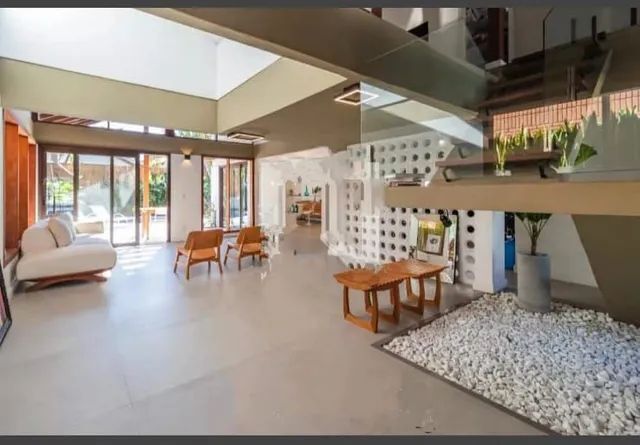 Porteira fechada. Completamente reformada para proprietários morarem. Ambientes totalmente integrados, com conceito minimalista. Projeto com muita luz natural na casa toda. Pé direito alto na área social e nos quartos. Sala de TV que flutua em um mezanino. Maravilhosa área de lazer, com belo paisagismo.