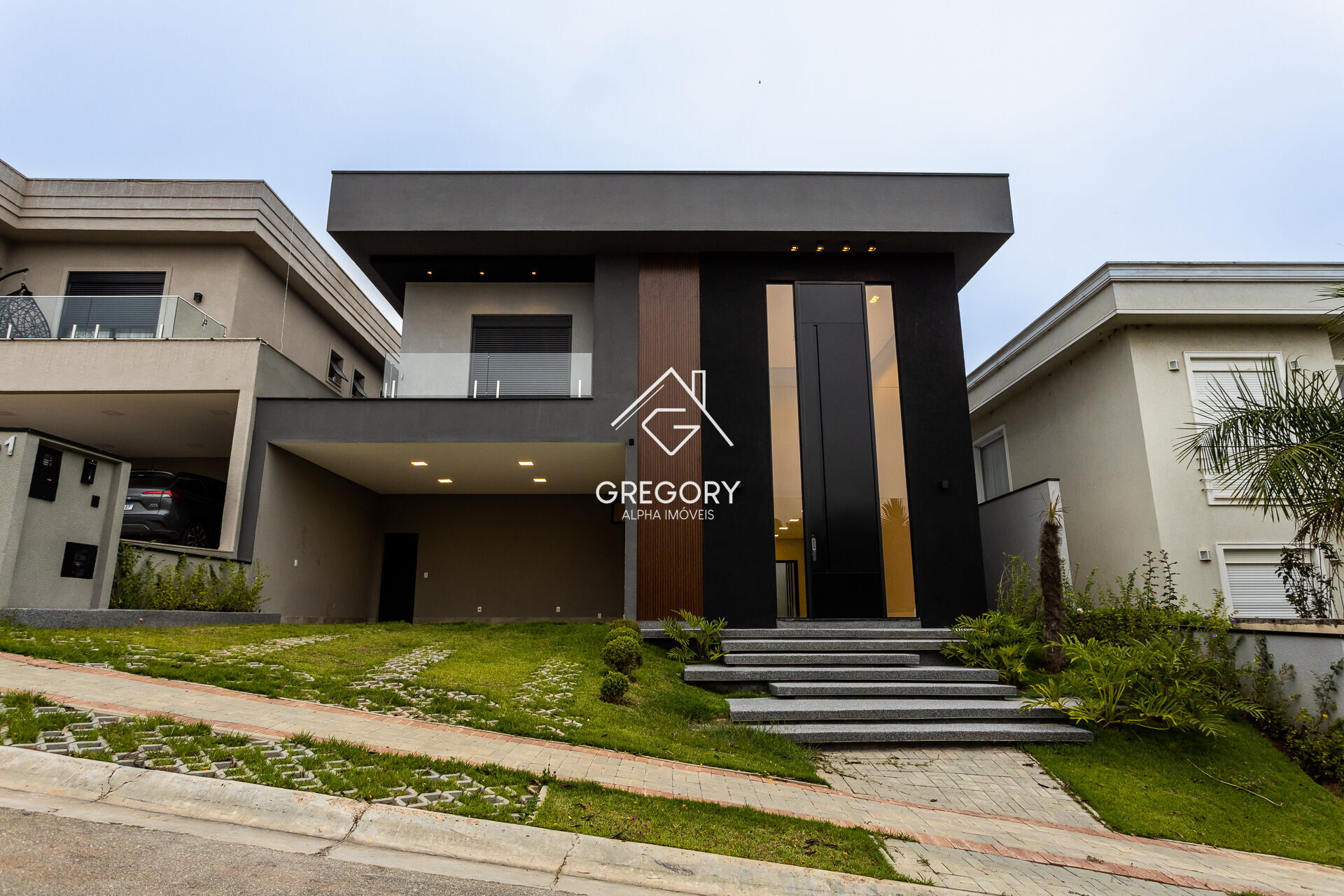 05 Suítes sendo uma master com closet e sala de banho com hidro. No pavimento térreo as Salas de Estar e Jantar são integradas com cozinha Americana com ilha quente e espaço gourmet. Um lavabo e um banheiro completo para atender o espaço de lazer externo. Piscina com prainha integrada com Sauna a vapor (Úmida). Casa 100% iluminada em LED (áreas internas e externas). Garagem para 04 carros (02 cobertos); Lavanderia coberta; Despensa; Corredores laterais e Amplo quintal. Porta de entrada imponente e pivotante com 6 metros de altura equipada com fechadura eletrônica e revestida em ACM. Porta de entrada da garagem pivotante com fechadura eletrônica e revestida em alumínio e vidro; Revestimento em madeira maciça (cumaru) no pavimento superior; Todos os pisos internos e externo são em Porcelanato da marca Elizabeth Revestimentos. A dimensão dos porcelanatos das salas, cozinha e área gourmet é de 1,20x1,2. Na Sala de banho master o porcelanato é de 1,00x 1,00 e demais ambientes é de 0,84x0,84.