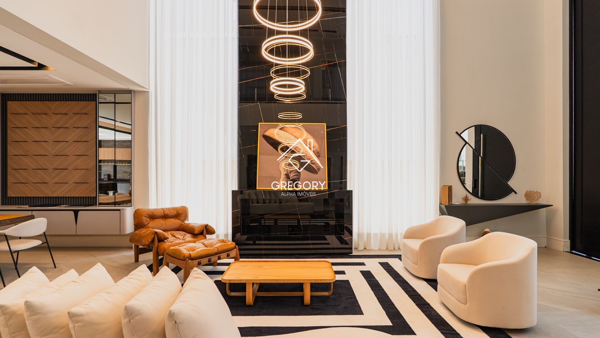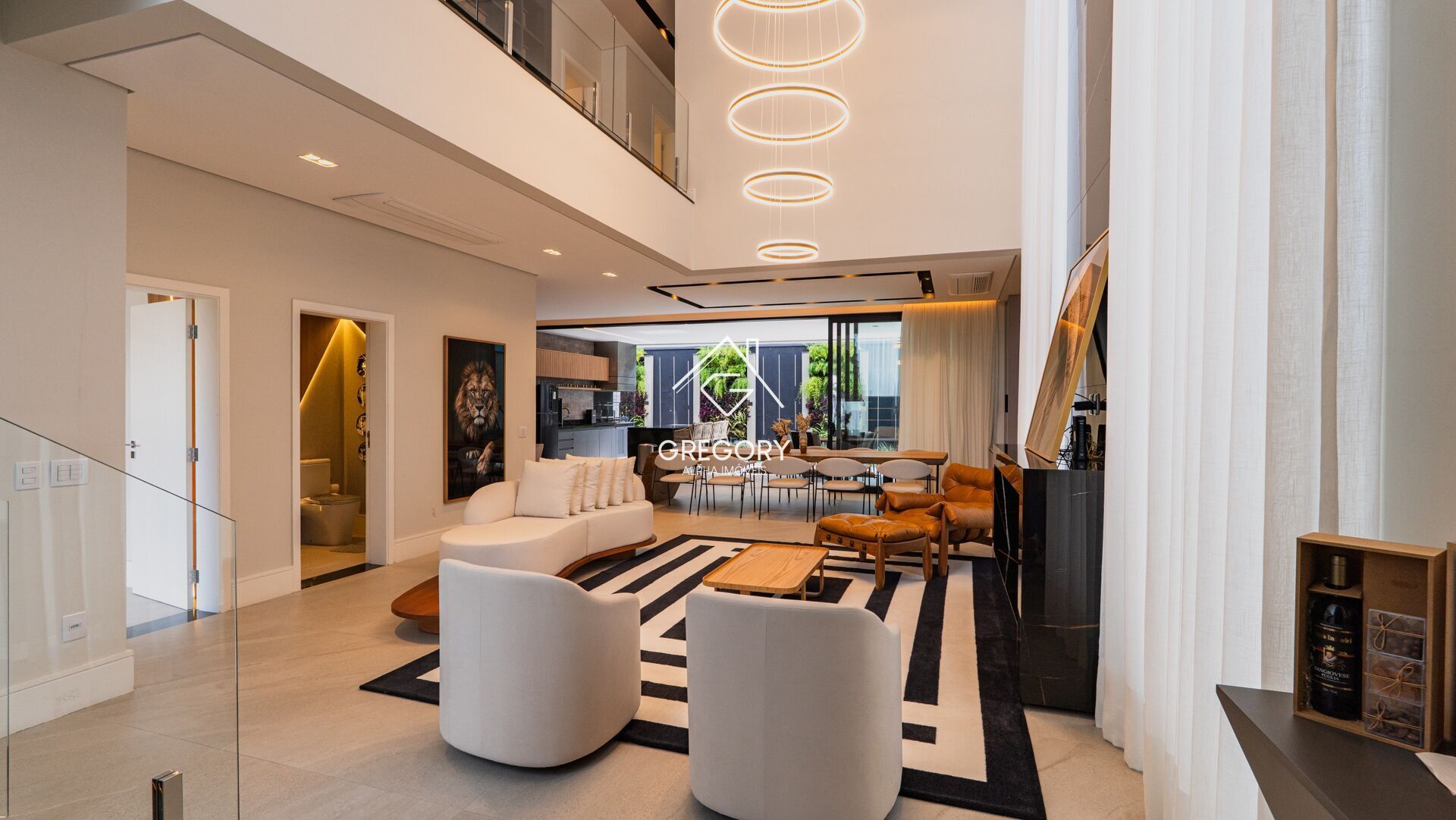 Amplo living com pé direito duplo e para vários ambientes
