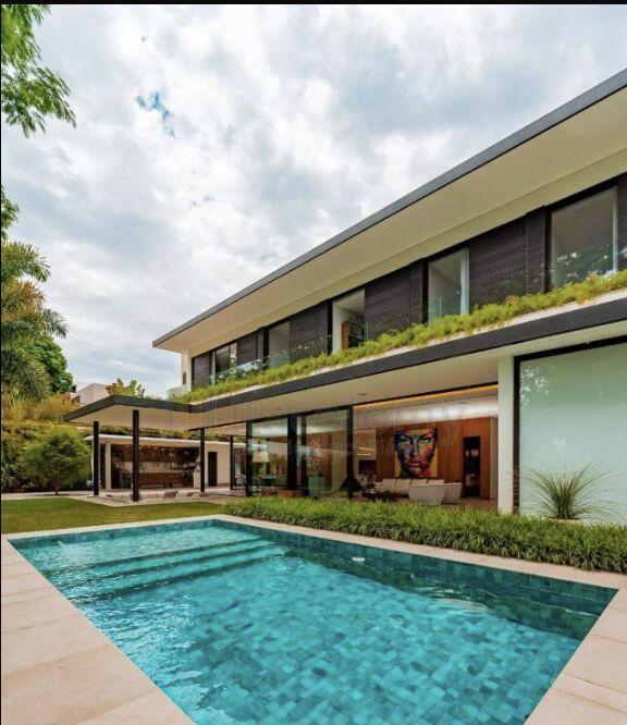 Casa projeta pela arquiteta Luita Trench, totalmente mobiliada para venda no Condomínio Residencial Tamboré 10. Em estrutura metálica, de esquina e em alameda tranquila e sem saída. Conta com 5 amplas suítes com sacada, suíte master com closet e banheira, ampla sala de estar, sala de jantar, sala de TV, sala de cinema, lareira, lavabo, escritório, cozinha, área de serviço com lavanderia, 2 dormitórios de serviço, repleta de armários, energia solar instalada, automação energética, fotovoltaica, ar condicionado, excelente iluminação natural, ampla área gourmet integrada, churrasqueira viking e coifa miele, piscina, sala de brinquedos, cozinha com eletrodomésticos viking e miele e 3 vagas cobertas de garagem, além das vagas descobertas.