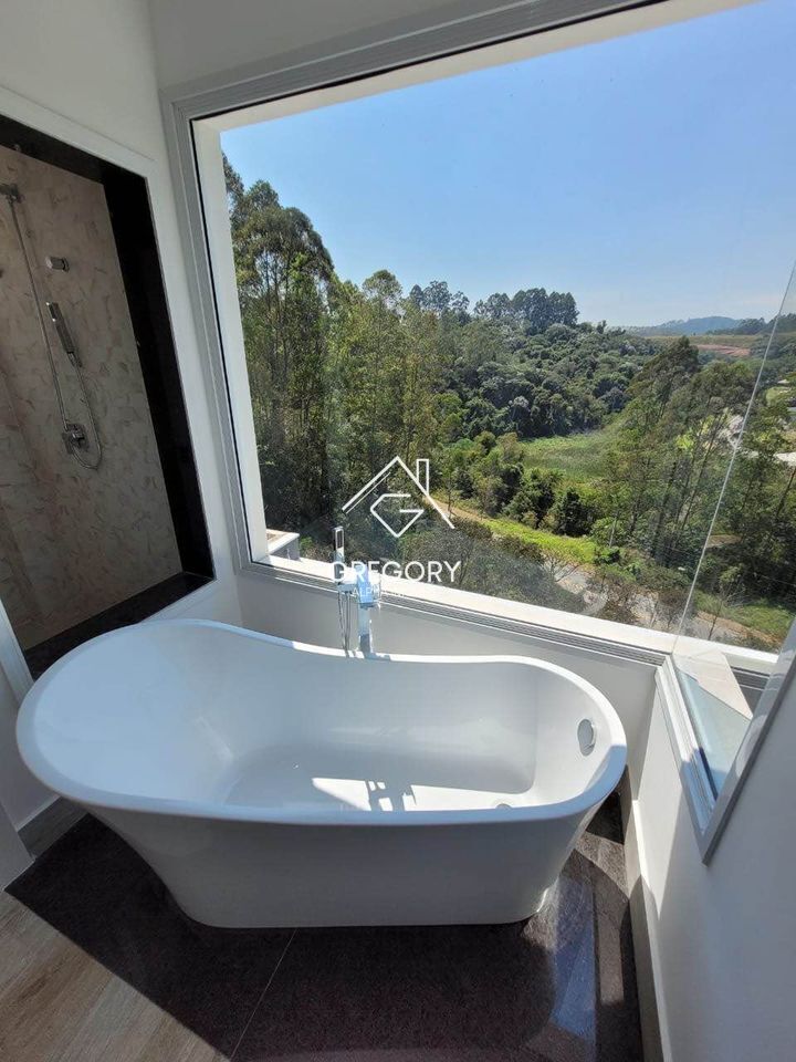 4 suítes, a master com closet e banheira de imersão com vista livre para mata preservada.