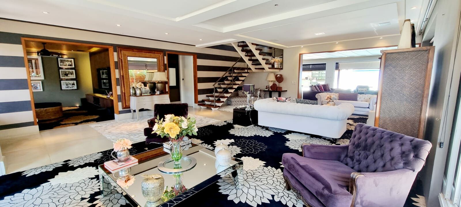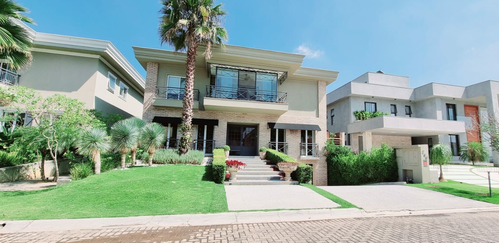 Localizada em rua plana no início do condomínio, esse imóvel possui acabamento refinado, de primeira linha e de excelente bom gosto. Cômodos amplos e arejados, área gourmet completa com churrasqueira e piscina com hidromassagem.