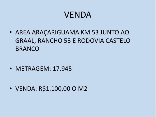 Rodovia Castelo Branco, 11 - Centro - Araçariguama/SP | Complemento: km 53 - 18147-000